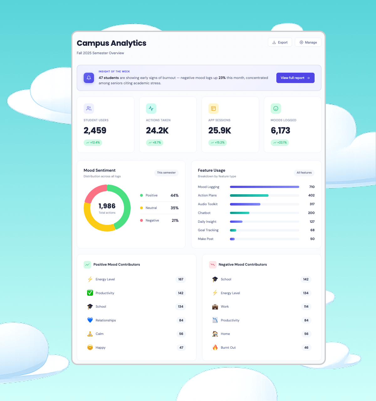 Students use Shmoody and feel better.You use Shmoody to drive impact.